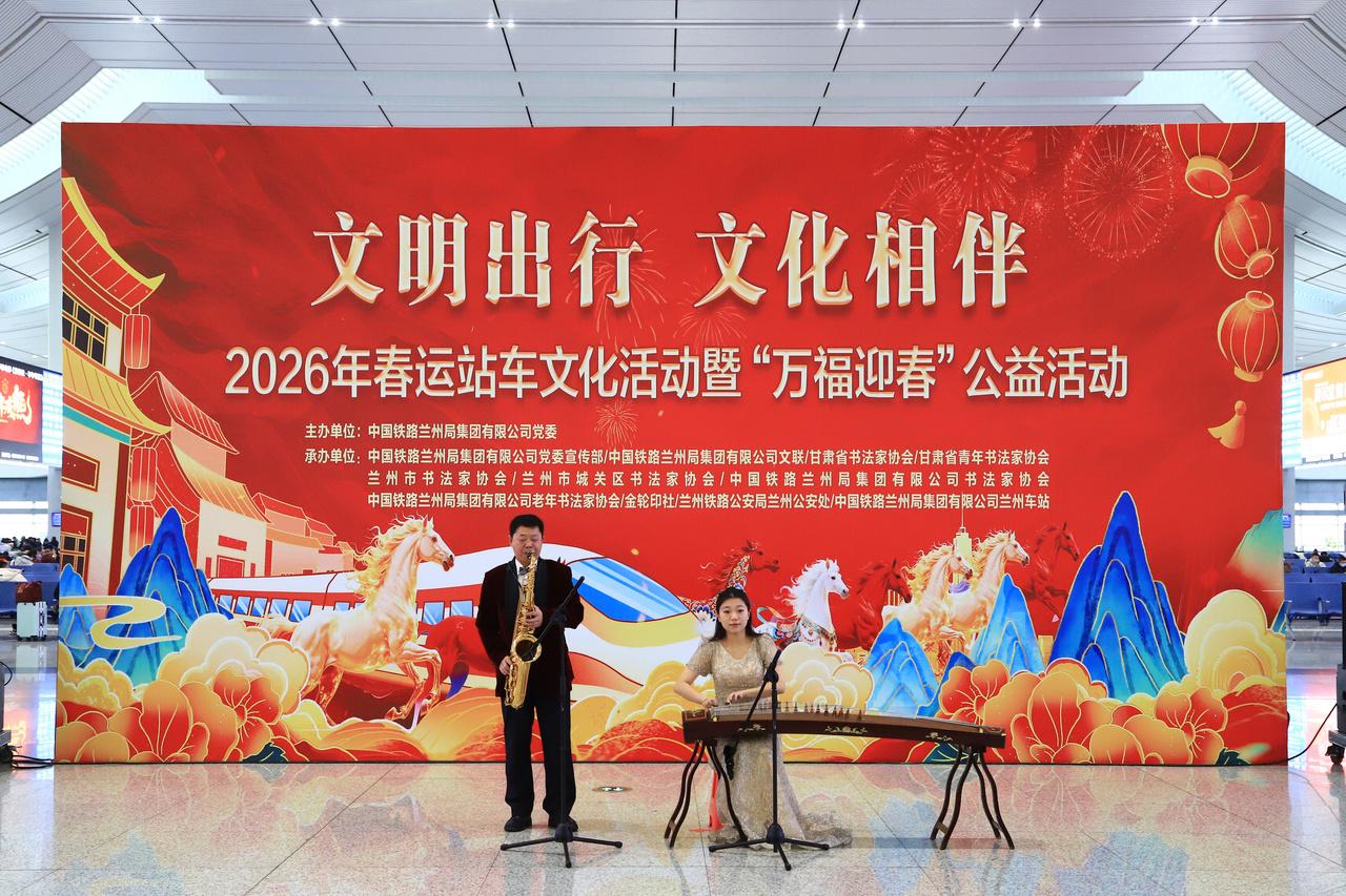 春运首日,国铁兰州局在兰州西站、银川站、嘉峪关南站等车站同步启动了“文明出行文化相伴”特色活动,让候车大厅成为充满年韵的“文化驿站”。书法、篆刻爱好者现场创作春联、“福”字、小挂轴、篆刻作品等向旅客赠送,文明服务礼仪展示、文明出行倡议诵读、签名承诺活动同步开展,引导旅客文明出行。